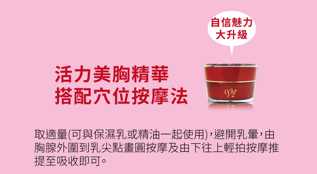 睡前請沾取適量美胸精華,以乳頭為中心點,放鬆身體,