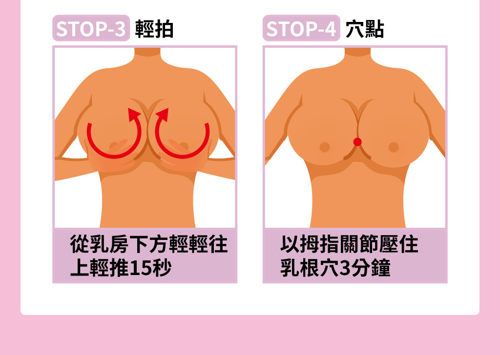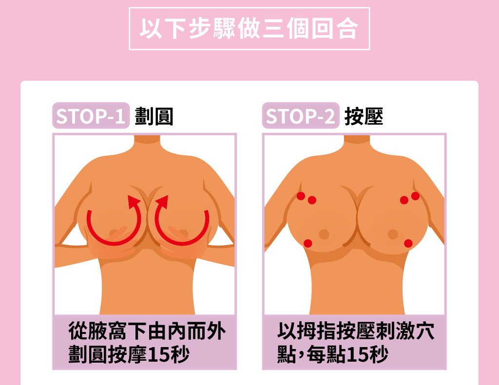 用雙手溫柔的以畫圓的方式按摩(由外往內、再由下往上托),按摩至完全吸收即可。